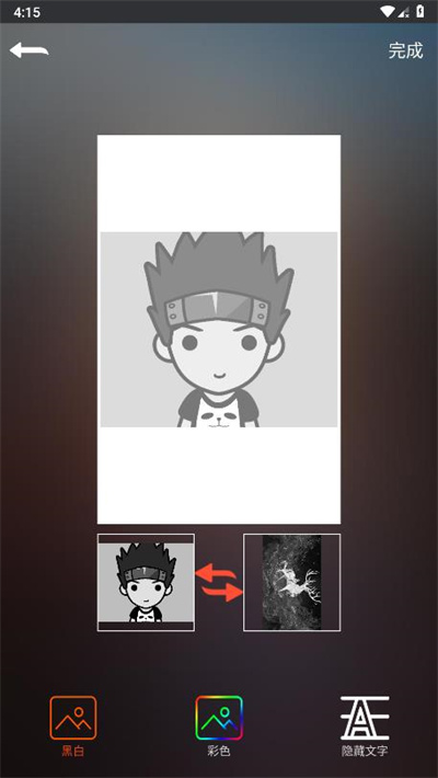 2.点击下方的【黑白】功能,然后你可以选择外部显示的照片以及隐藏的照片。