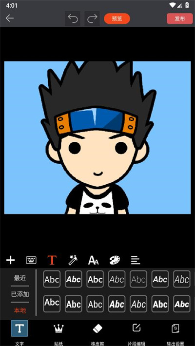 2.接着选择一张照片,然后你可以对图片进行文字、贴纸、橡皮擦、片段编辑、输出设置等操作。
