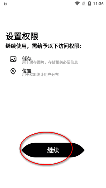 2、打开软件后先要获取权限,储存权限及位置权限。