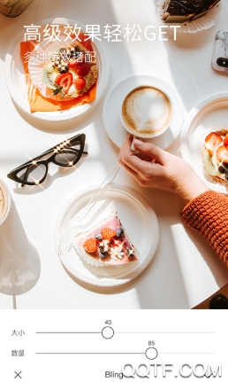 【高级效果一秒搞定】60+精心设计的高品质滤镜,精致夺目的blingbling,独特散射特效,高级取色边框等,操作简单一秒搞定,提升照片质感。自然、炫酷、清新、甜美等多种效果任你选择。