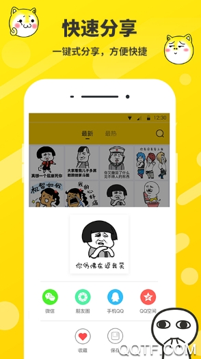 表情包制作器是一款适用于微信斗图、QQ聊天斗图、表情制作的制作表情包软件,能轻松做表情p表情,支持在微信、QQ等社交平台钟发送各种自制表情包,是聊天必备的斗图神器。表情包制作器拥有海量的表情包素材,帮你DIY表情自制表情包,无论是蘑菇头表情包、鬼畜表情、动画表情、还是萌表情、gif表情、搞笑表情,只做你自己专属的微信斗图表情包。