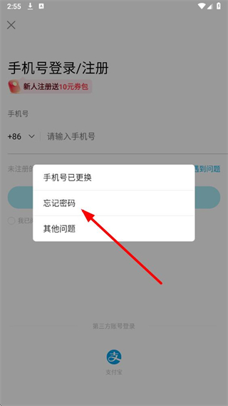 3、在弹出的菜单中,点击选择忘记密码选项。