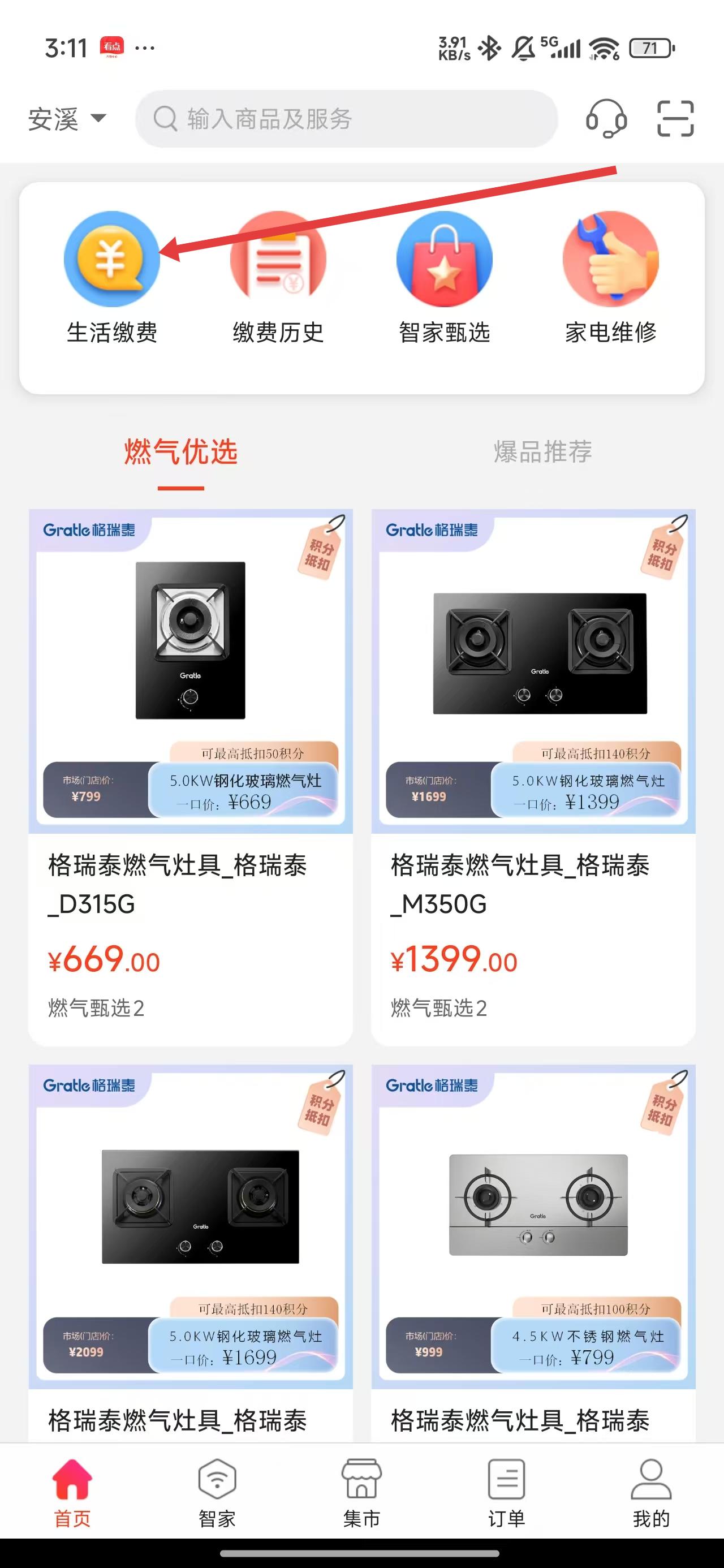 1、在e城e家首页面中,点击生活缴费选项,进入缴费操作。
