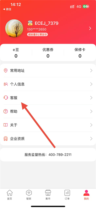1、在e城e家app首页点击我的选项,进入个人页面。