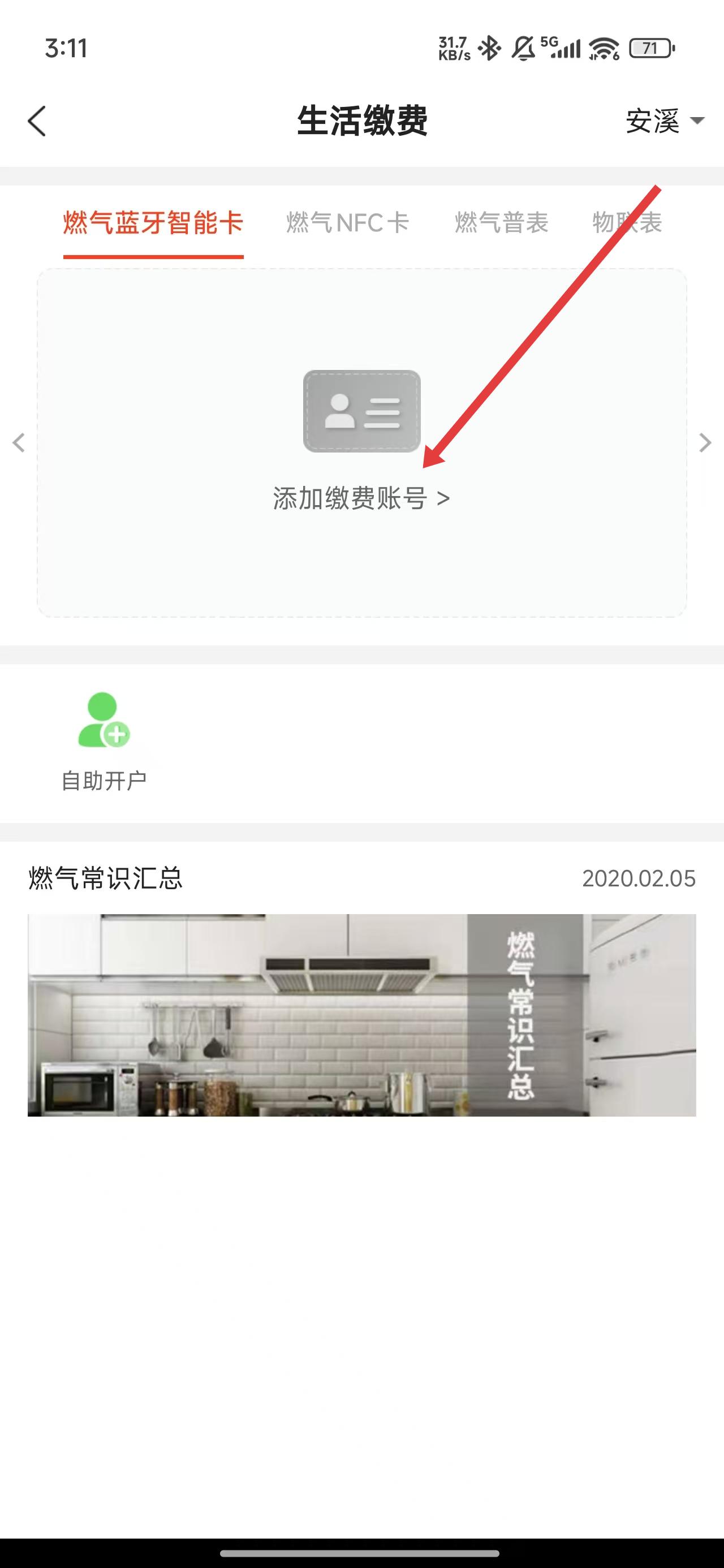 2、在生活缴费页面中,点击添加缴费账号按钮,进入添加步骤。