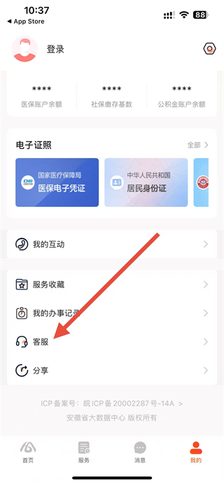 2、在我的个人页面中,找到并点击客服选项,进入智能客服界面。