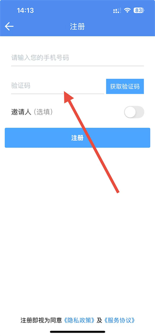 4、在注册界面输入手机号码,点击获取验证码,填入收到的验证码后,点击注册完成账号创建。