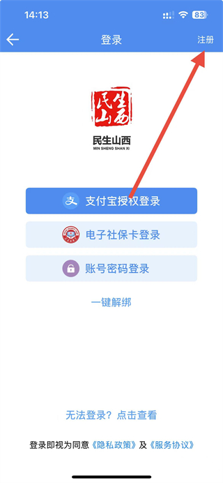 3、进入登录页面后,点击右上角的注册按钮,即可进入账号注册的操作界面。