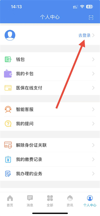 2、在个人中心界面中,找到右上角的去登录按钮并点击,跳转至登录相关页面。