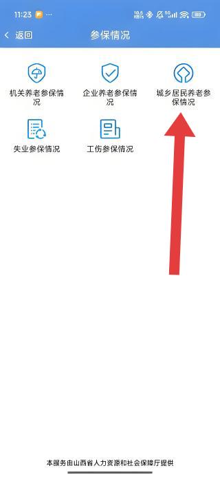 3、在参保情况页面,选择城乡居民养老保险情况选项,查看该险种的具体参保详情,了解自身城乡居民养老保险的参保状态。