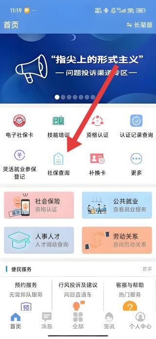 1、在社保服务首页,找到并点击社保查询选项,进入社会保险功能界面,可查看参保情况、缴费信息等各类社保相关信息入口。