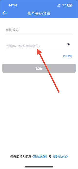 4、在账号密码登录界面,输入手机号码和密码,点击登录按钮,即可完成登录。