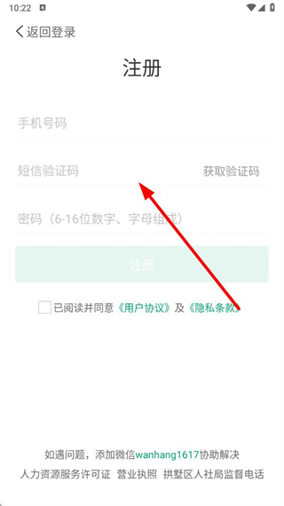 3、在界面输入手机号码,获取验证码输入并设置密码,勾选同意用户协议,点击注册按钮即可完成注册。