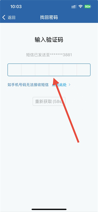 3、在输入验证码页面,输入收到的短信验证码,完成验证。