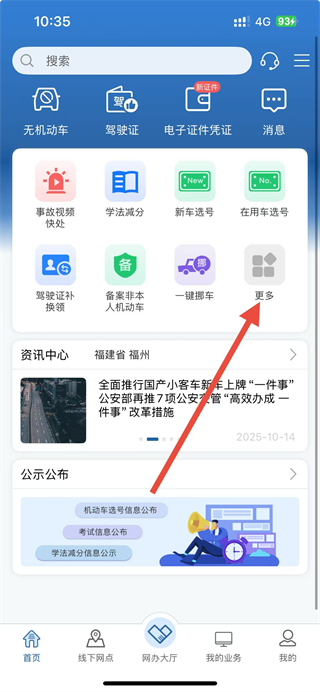 1、打开交管12123APP,在首页点击更多进入业务中心。