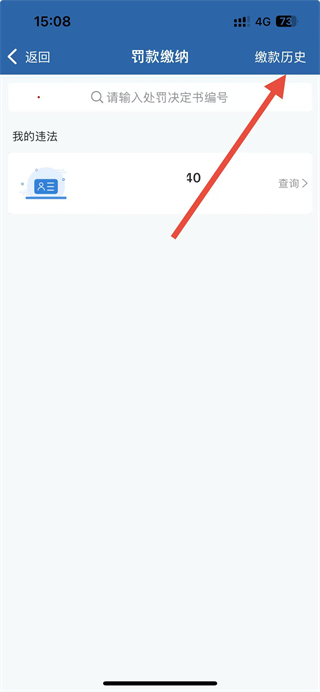 4、在罚款缴纳页面点击缴款历史选项,即可查看罚款缴费记录。