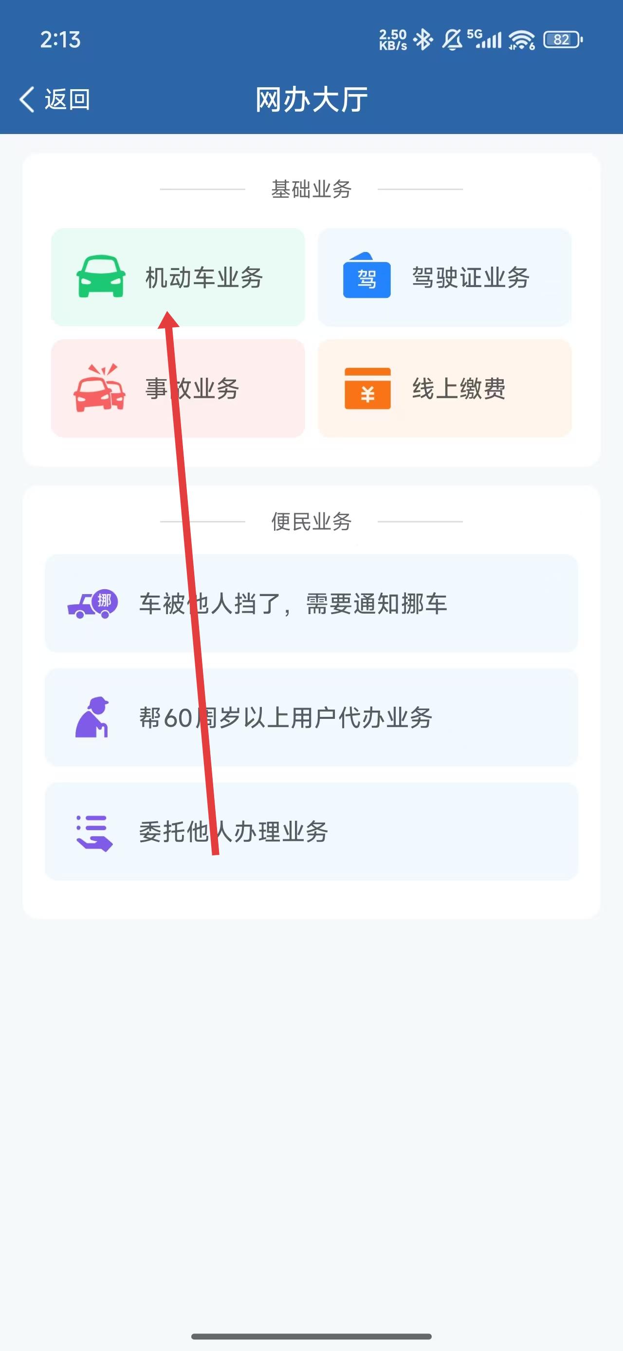 2、在网办大厅里,可以点击机动车业务选项,进入查看。