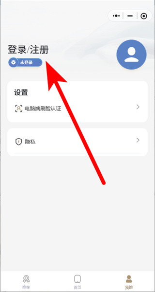 2、在个人页面中,点击登录/注册按钮,进入登录页面。