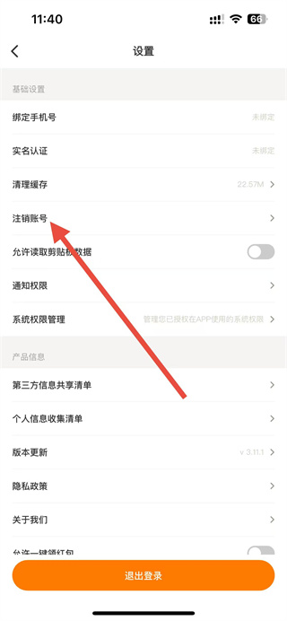 3、在设置界面中,找到注销账号选项并点击,进入账户注销页面。