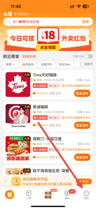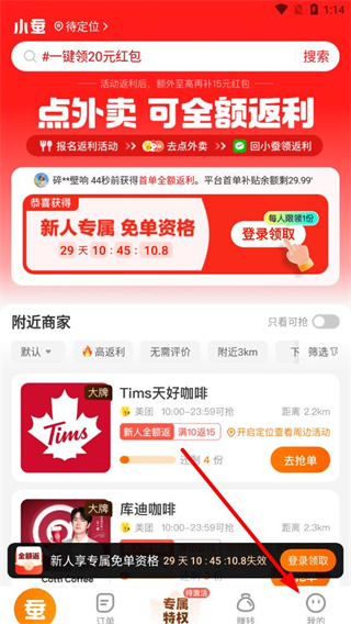 1、打开小蚕霸王餐app,点击底部我的选项,进入个人界面。