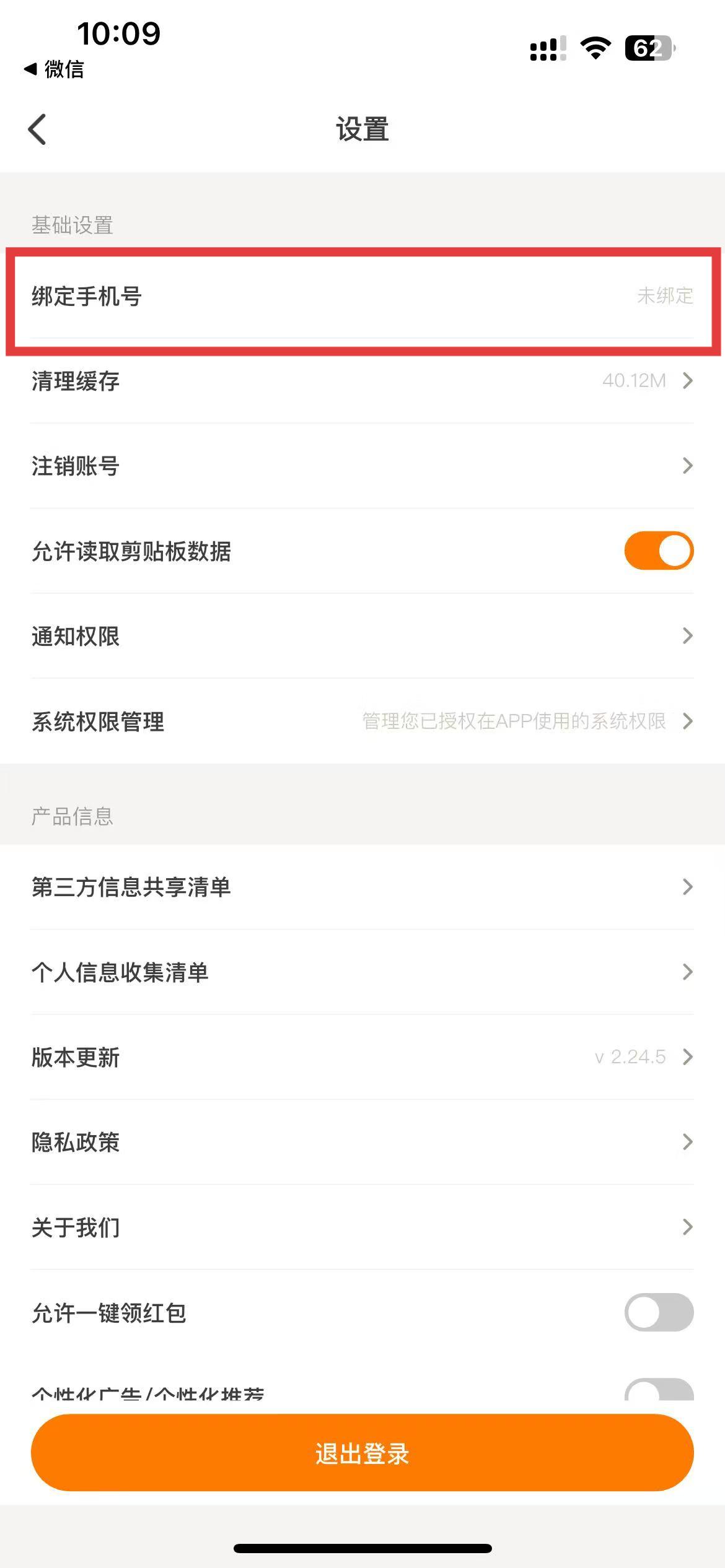 3、在设置界面中,找到绑定手机号选项,点击进入手机号绑定流程。