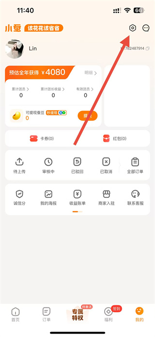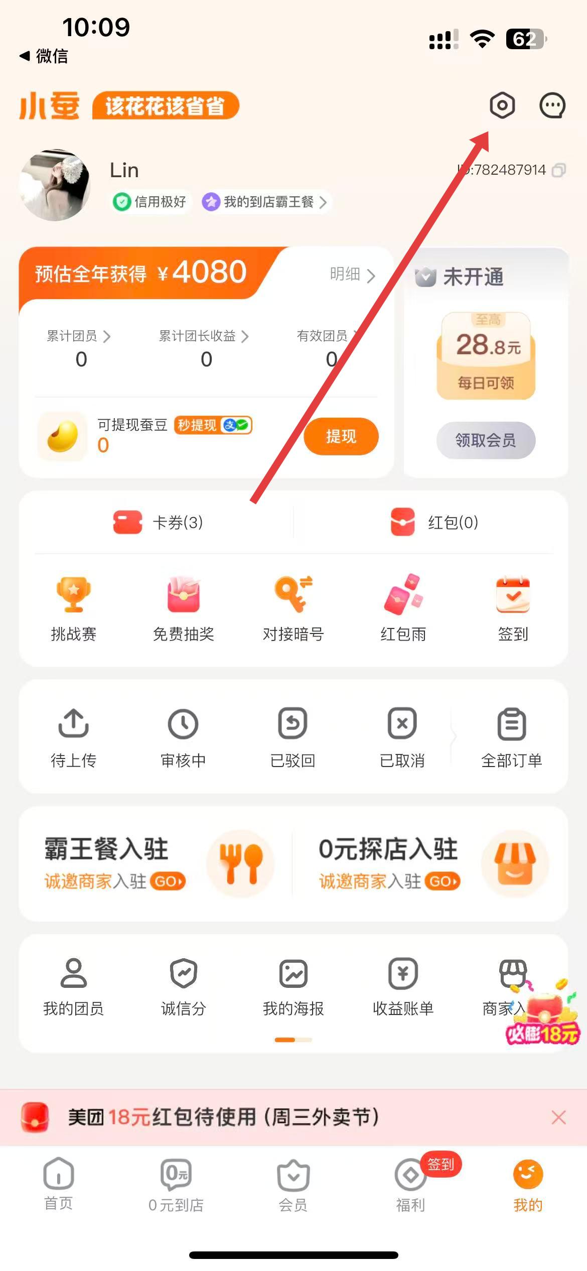 1、打开小蚕惠生活APP,点击底部导航栏中的我的选项,进入个人页面。