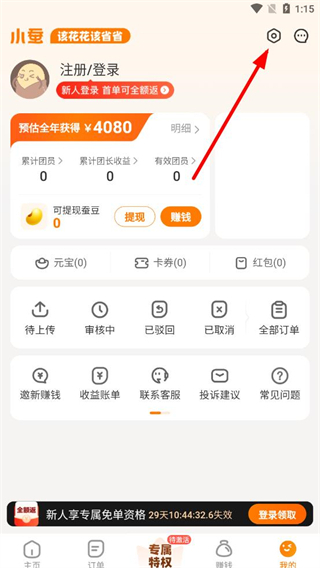 2、在个人界面,点击右上角的设置图标,进入设置页面。
