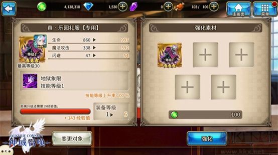 2、强化:强化需消耗玛那,是快速提升角色等级的培养方式,等级升后角色各项属性相应增加;玛那可通过冒险、出售玛那瓶获取;