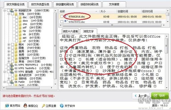 5、如果找到您要恢复的文件,可以在树形控件和列表控件里勾选您需要恢复的文件和目录。然后点击导出按钮,导出数据。