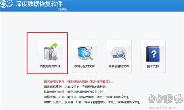 1、进入主功能界面,点击主界面上的恢复删除的文件功能按钮。